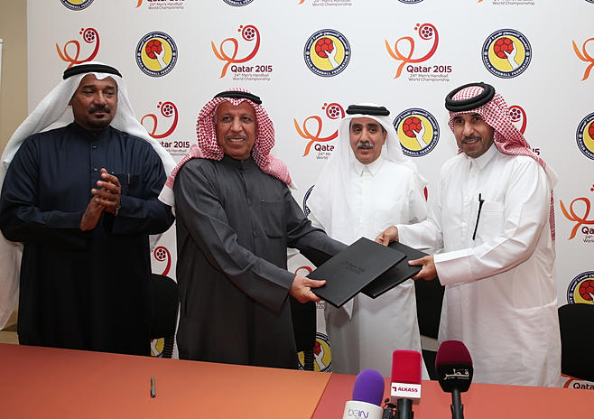 على هامش بطولة قطر الدولية الودية السابعة لكرة اليد للرجال والتى تقام مباريتها على صالة نادي الريان الرياضى - تم توقيع عقد رعايه بين اللجنه العليا المنظمة لبطولة كاس العالم الرابعة والعشرين لكرة اليد (قطر 2015) والاتحاد الاسيوي لكرة اليد وتم توقيع عقد الرعاية بالمركز الاعلامي بصالة نادي الريان الرياضي بحضور كلا من ممثلى الاتحاد الاسيوي لكرة اليد الدكتور / أحمد ابو اليل المدير التنفيذي للاتحاد الاسيوي لكرة اليد والسيد جاسم دياب المدير الفني للاتحاد الاسيوي لكرة اليد وبين الدكتور ثاني عبد الرحمن الكواري المدير التنفيذي للجنة العليا المنظمة لبطولة كاس العالم الرابعة والعشرين لكرة اليد (قطر 2015) وبحضور نائب رئيس اللجنة المنظمة لبطولة العالم 2015 لكرة اليد السيد / احمد محمد الشعبي ومحمد جابر الملا امين سر الاتحاد القطري لكرة اليد