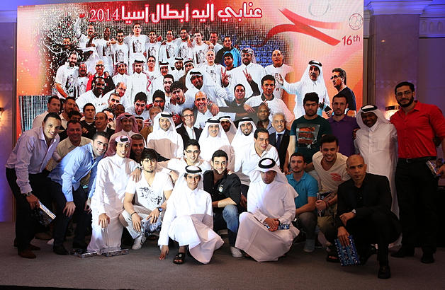 فى حفل كبير اقيم بقاعة الاحتفالات الكبرى بفندق ماريوت الدوحة , احتفلا مجلس ادارة الاتحاد القطري لكرة اليد برئاسة احمد الشعبي وبحضور محمد جابر الملا امين السر العام , وخليفة تيسير الجاسم امين السر المساعد , وحمد النعيمي رئيس لجنة المدربين , و عادل العنزي رئيس اللجنة المالية ولفيف من رؤوساء الاجهزة الادارية للاندية الرياضية والمدربين بالمنتخب الوطنى الاول الحائز على كأس اسيا للرجال لكرة اليد فى نوفمبر الماضى بالبحرين , وقد كرم احمد الشعبي رئيس الاتحاد مدرب المنتخب الوطنى الاول "" فالريو ريفيرا " وكرم ادارى ومدربي المنتخب وسط اجواء احتفالية كبيرة , بداء الحفل بفيديو مصور يستعرض لاعبي المنتخب الوطنى وبعض اللقطات الجميلة لحظة الفوز بكاس اسيا لاول مرة اتبعها كلمة عن انجازات الاتحاد القطري التى حققها على مستوي جميع الفئات السنية وعلى مستوي كرة اليد الشاطئية والتى توجت بكاس اسيا للرجال مصاحبة لفيديو استعراضى لاهم انجازات الاتحاد القطري لكرة اليد فى الاعوام السابقة اتبعاها كلمة القاها مدرب المنتخب الوطنى " فاليرو ريفيرا " اعرب فيها عن شكره وسعادته بهذا الانجاز الكبير الذي يضاف الى سجل انجازاته وانه سعيد بانه توج بلقب فى بداية مشواره مع المنتخب , كما ابدي شكره وامتنانه الكبير لكل الدعم اللا محدود من القيادات الرشيدة ومن الدولة و من الاتحاد القطري لكرة اليد الذى توج بكاس اسيا , ثم جاءت فى كلمة " احمد الشعبي رئيس الاتحاد " عن سعادته بهذا الانجاز الكبير الذى شرف كرة اليد القطرية وشرف للرياضة القطرية بدعم لا محدود من قيادتنا الرشيدة , كما ابدي الشعبي فى كلمته عن سعادته بدعم الاندية وان هذه الانجازات لم تحقق دون جهد او عناء بل نتيجة تجارب واخطاء تعلمنا منها كيف نسير على الدرب الصحيح , كما اضاف ان دعم الاندية الوطنية التى بذلت الجهد فى الارتقاء بلعبة كرة اليد القطرية ساعد على الانجازات التى تحققت وطفرة كرة اليد القطرية وتميزها على المستوي العالمى , ثم اتبع ذلك تكريم وفد المنتخب القطري من مدربي واداري المننتخب الاول ثم تكريما للصحفين من صحيفة الراية , الوطن . الشروق . العرب ,. تلفزيون قطر , قناة الكأس , قناة الريان , وصحيفة استاد الدوحة وتبع ذلك تكريم لاعبيى المنتخب الاول وسط كاس البطولة وانتهى الاحتفال بالدعوة الى العشاء